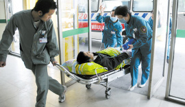 “急救醫(yī)生變身‘最美擔(dān)架哥’,要給他120個(gè)贊!”昨日,一名醫(yī)生在泥地里搶救、抬送傷員的照...